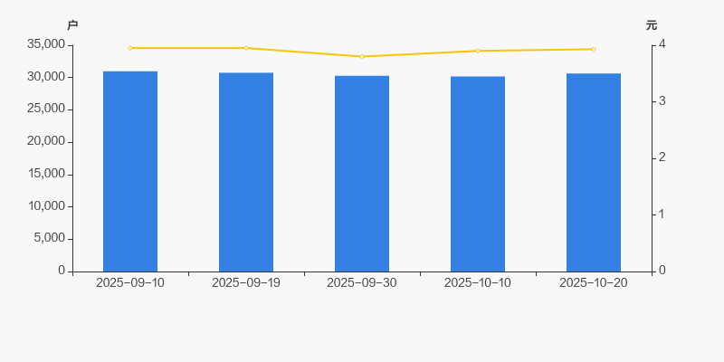 截至2025年10月20日,公司最新总股本为13.4亿股,其中流通股本为13.27亿股。户均持有流通股数量由上期的4.4万股下降至4.33万股,户均流通市值17.02万元。