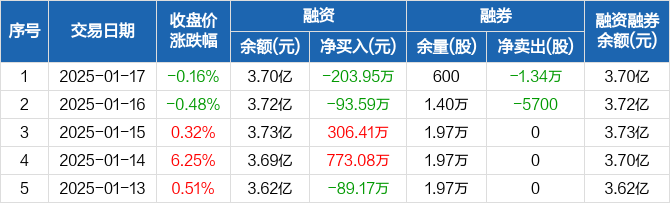 新北洋:融资净偿还203.95万元,融资余额3.7亿元(01-17)
