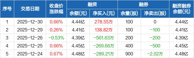 新北洋:融资净买入278.55万元,融资余额4.44亿元(12-30)