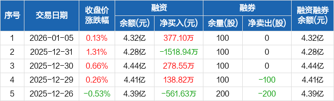 新北洋:融资净买入377.1万元,融资余额4.32亿元(01-05)