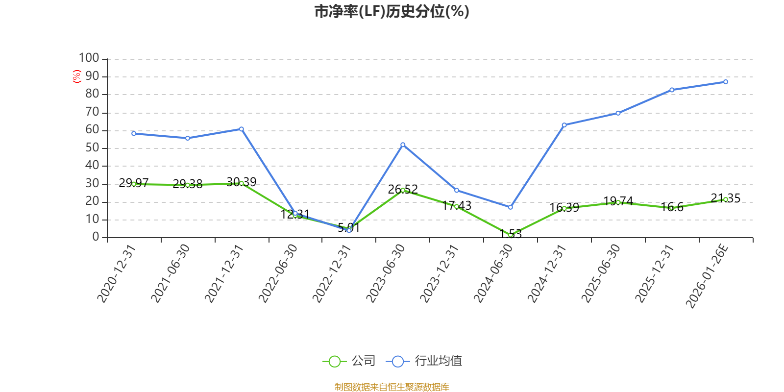 市盈率、市净率为负时,不显示当期分位数,会导致折线图中断。