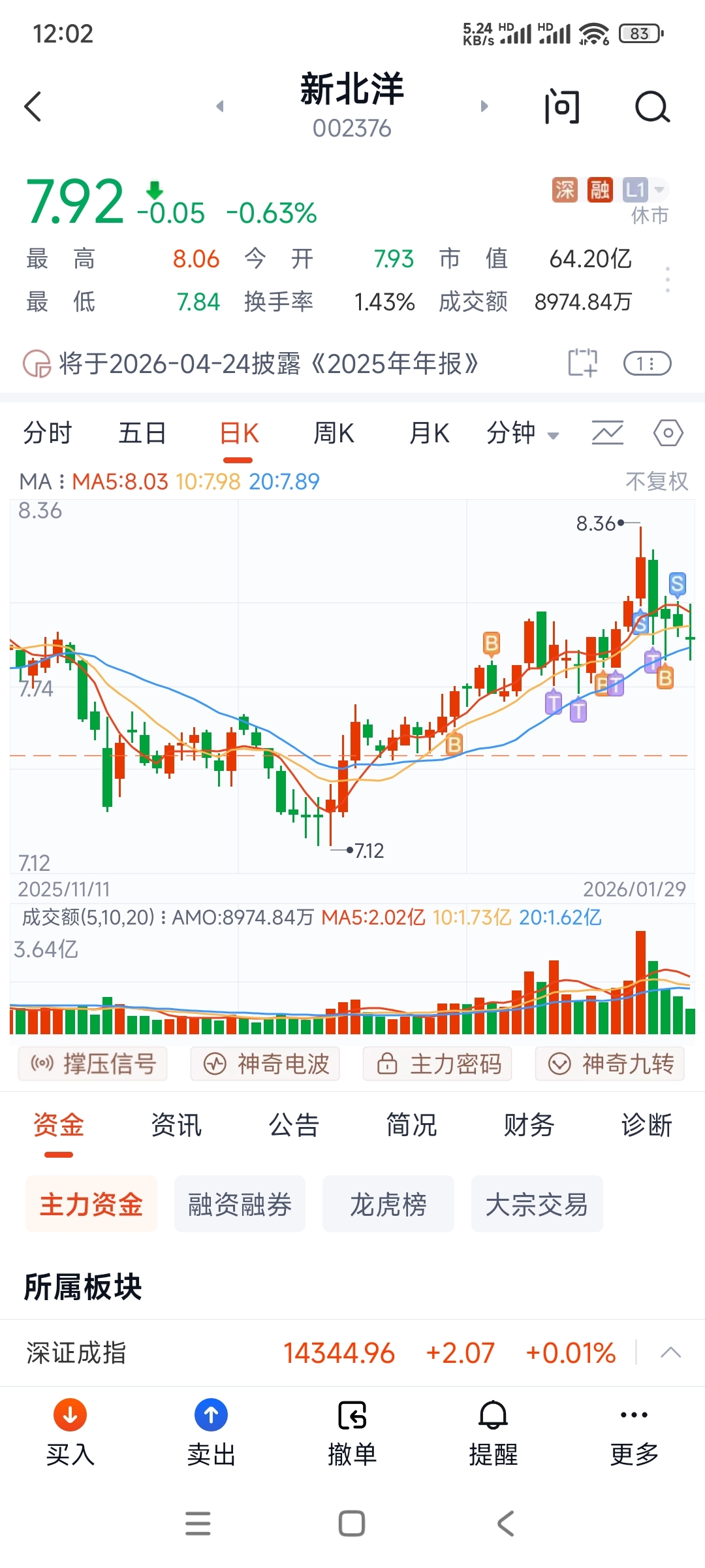 $新北洋(SZ002376)$ 今天跟着主力又做了1毛钱的t。我深知这个弱庄的特点和此股的特性,只要有上涨立马抛,下跌就回补,目前成本已经做到7.2以下。