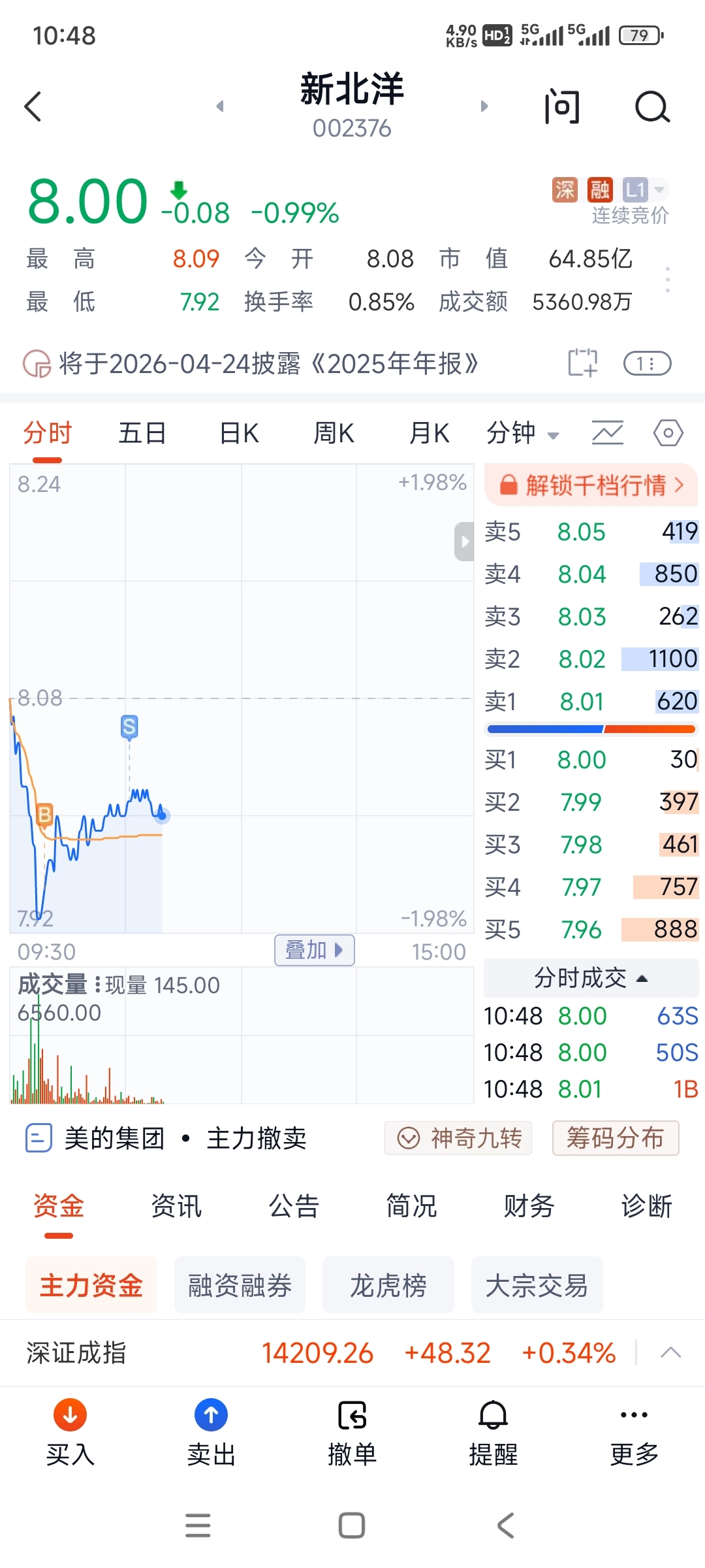 $新北洋(SZ002376)$ 今天只做了8分钱的t,苍蝇也是肉,成本不断降低。每天都是确定性。能赚钱,也套不住散户,这个股还是可以的。一年下来收益也可以的。