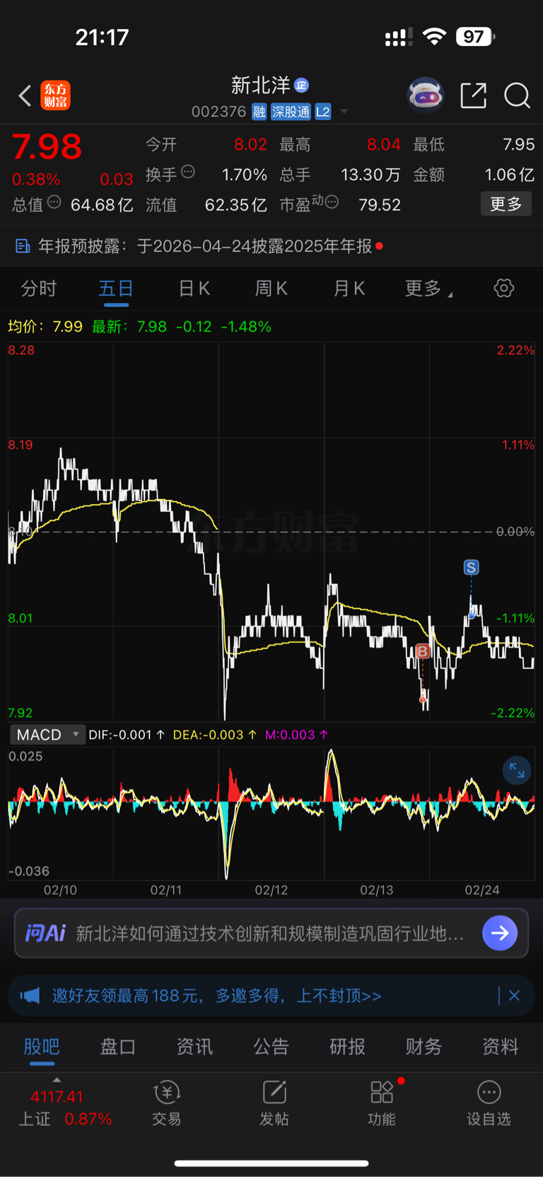 温馨提示: 1.根据《证券法》规定,禁止编造、传播虚假信息或者误导性信息,扰乱证券市场;2.用户在本社区发表的所有资料、言论等仅代表个人观点,与本网站立场无关,不对您构成任何投资建议。用户应基于自己的独立判断,自行决定证券投资并承担相应风险。《东方财富社区管理规定》