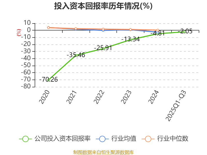 盈利能力方面, 2025年前三季度公司加权平均净资产收益率为-0.06%,同比上升9.1个百分点。公司2025年前三季度投入资本回报率为-2.05%,较上年同期上升2.64个百分点。