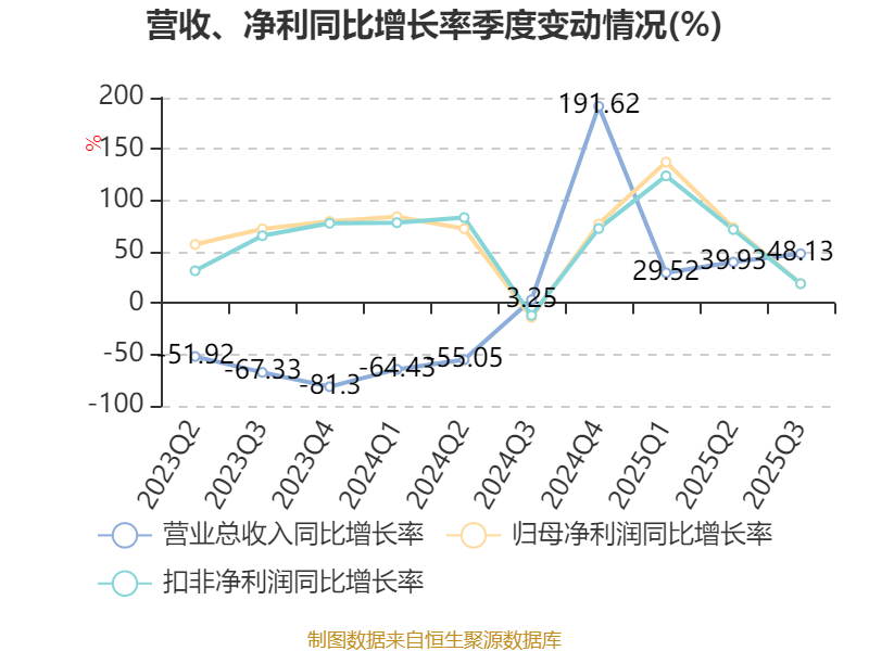 资产重大变化方面,截至2025年三季度末,公司货币资金较上年末减少64.21%,占公司总资产比重下降7.74个百分点;存货较上年末增加319.84%,占公司总资产比重上升7.56个百分点;应收票据及应收账款较上年末减少14.54%,占公司总资产比重下降5个百分点;预付款项较上年末增加87.92%,占公司总资产比重上升1.76个百分点。