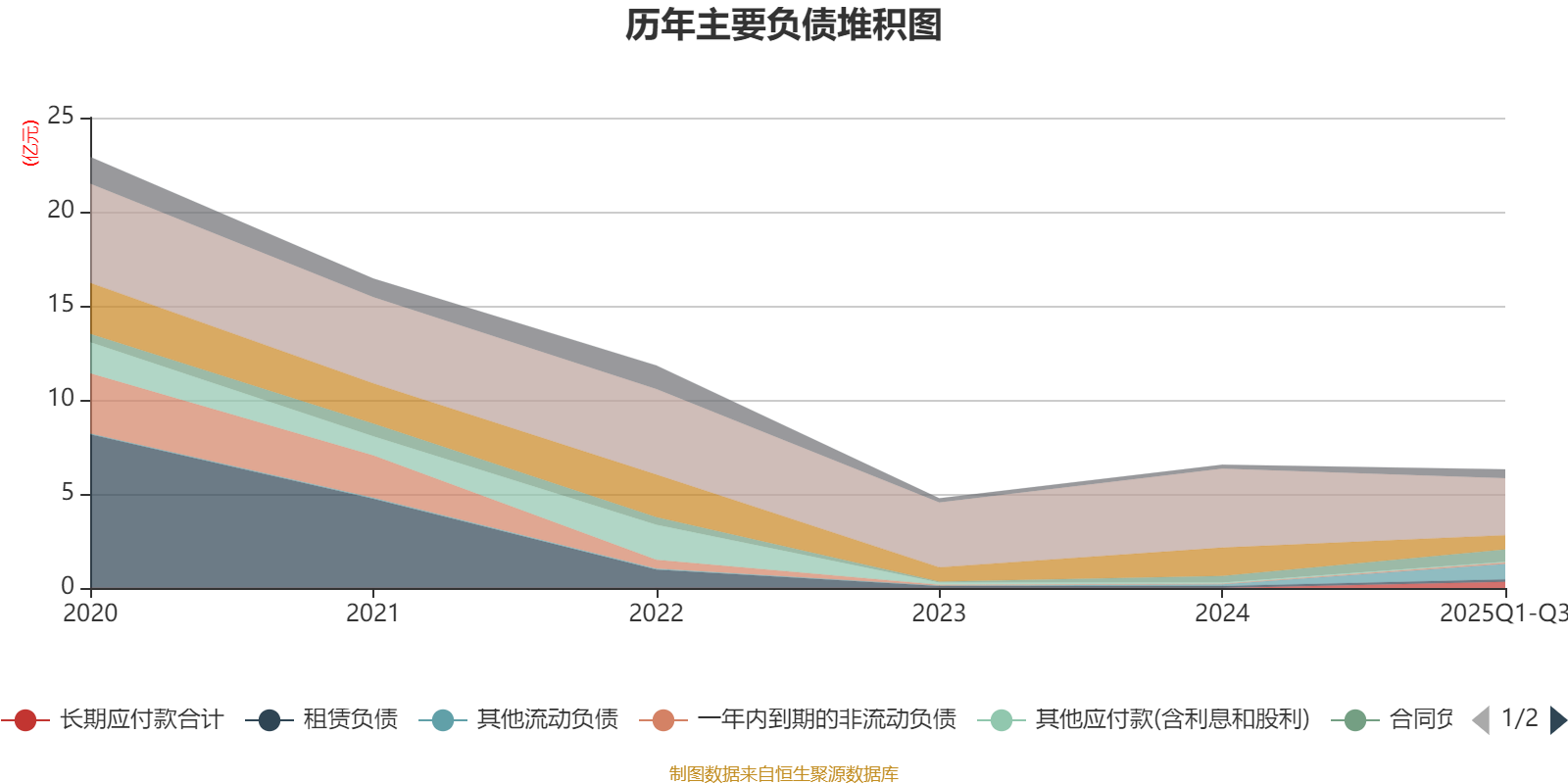 负债重大变化方面,截至2025年三季度末,公司短期借款较上年末减少27.89%,占公司总资产比重下降9.07个百分点;其他流动负债较上年末增加772.02%,占公司总资产比重上升6.77个百分点;应付票据及应付账款较上年末减少49.65%,占公司总资产比重下降6.28个百分点;长期应付款合计占公司总资产的3.05%,上年末为0。