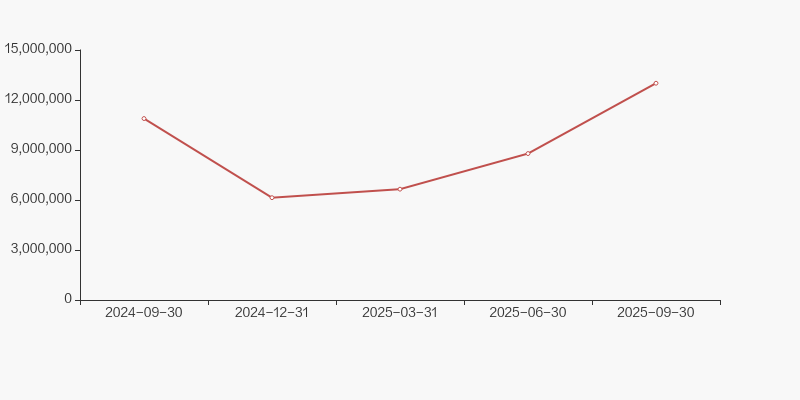 截至2025年9月30日,公司最新总股本为12.01亿股,其中流通股本为11.95亿股。户均持有流通股数量由上期的2.2万股下降至1.22万股,户均流通市值15.11万元。