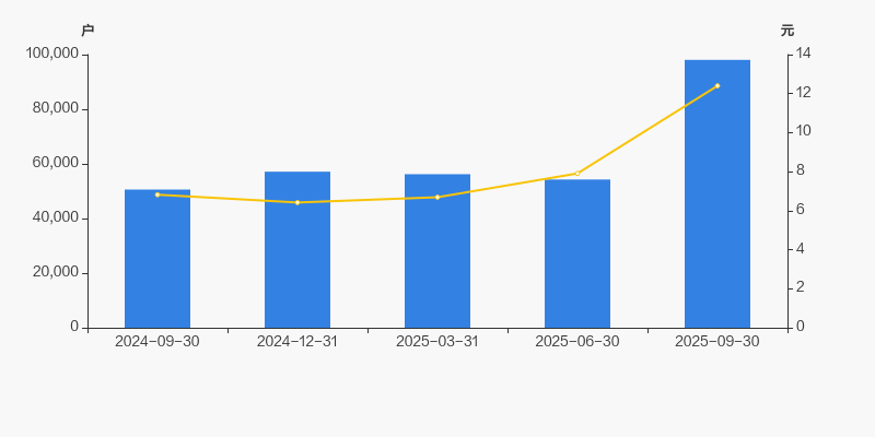 2024年9月30日至今,公司股东户数显著大幅增长,区间涨幅达93.82%。2024年9月30日至2025年9月30日区间股价上涨81.76%。