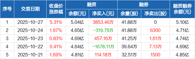 章源钨业:融资净买入3853.46万元,融资余额5.04亿元(10-27)