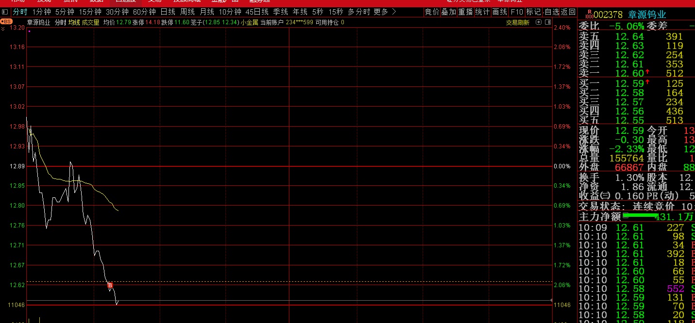 钨价今天突破30万,我想钨今天会有报复性反弹出现。所以果断换过来。
