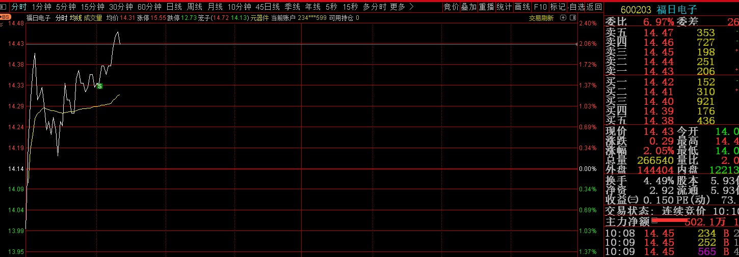 又买回来了,福日电子赚了五个多点,章源钨业比卖出价低了一块。多换十个点有余。福日