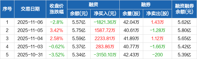 章源钨业:融资净偿还1821.36万元,融资余额5.57亿元(11-06)