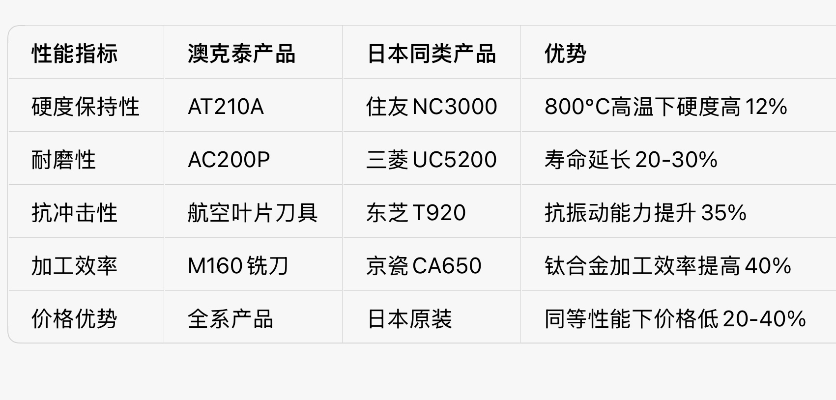 赣州澳克泰工具,其硬质合金刀具对他国主力品牌(住友、三菱、东芝、京瓷等)多系列产