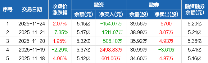 章源钨业融资融券信息显示,2025年11月24日融资净偿还154.07万元;融资余额5.15亿元,较前一日下降0.3%。