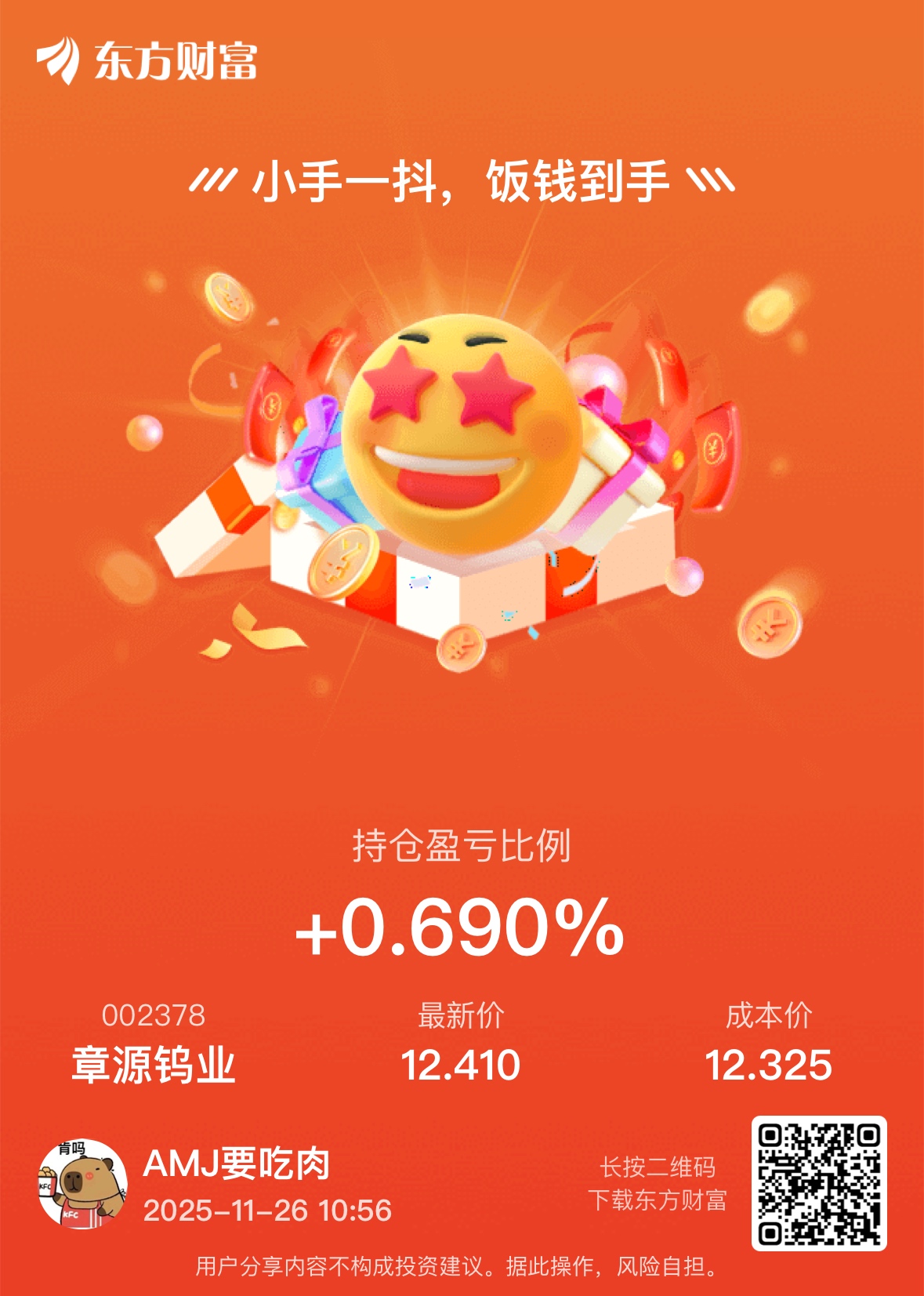 $章源钨业(SZ002378)$ 18号13.1入坑的,今天可算回本了,还是得做T