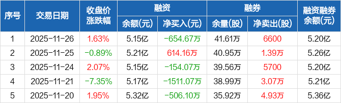 章源钨业:融资净偿还654.67万元,融资余额5.15亿元(11-26)
