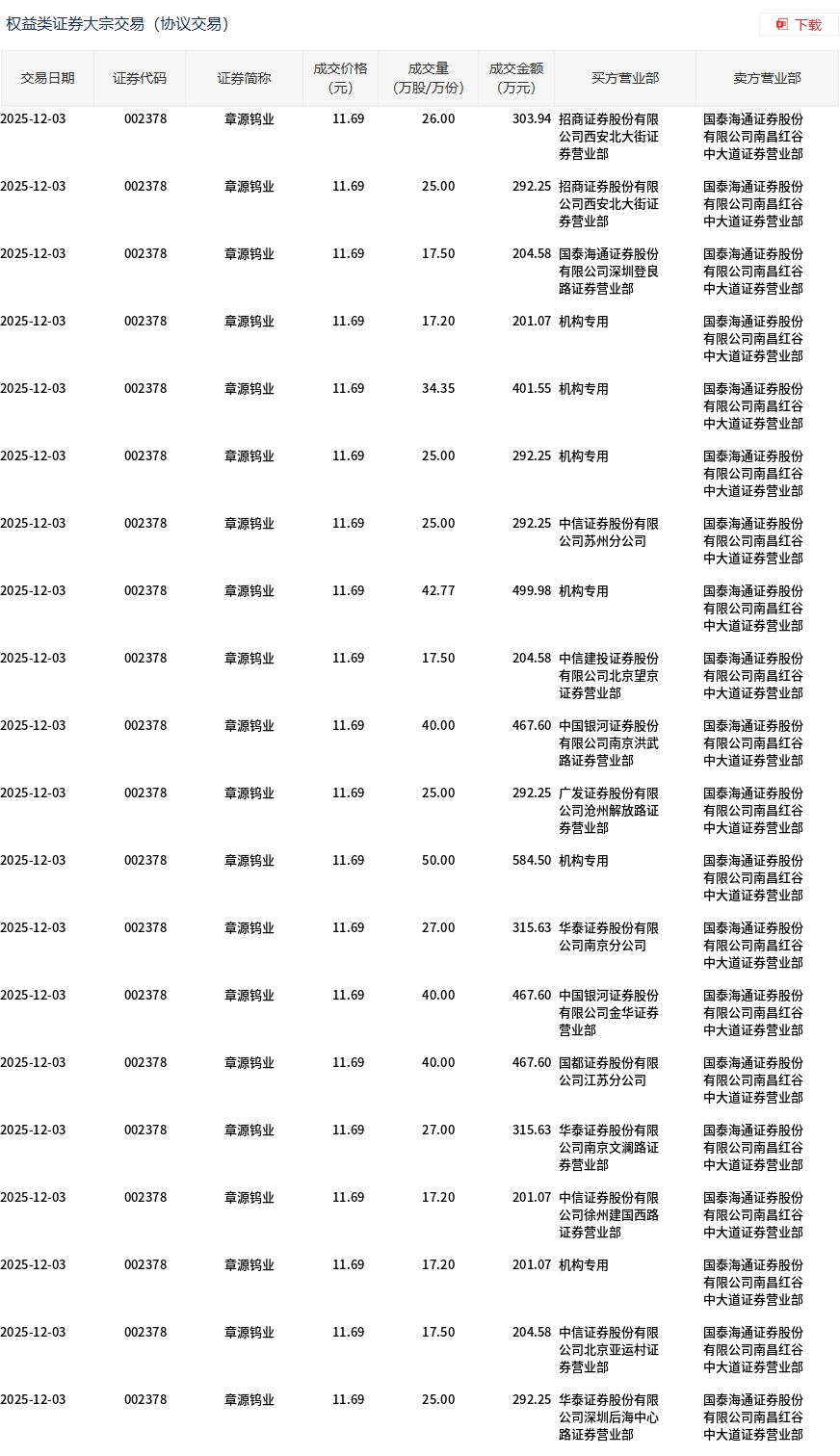 章源钨业今日大宗交易折价成交556.22万股,成交额6502.23万元