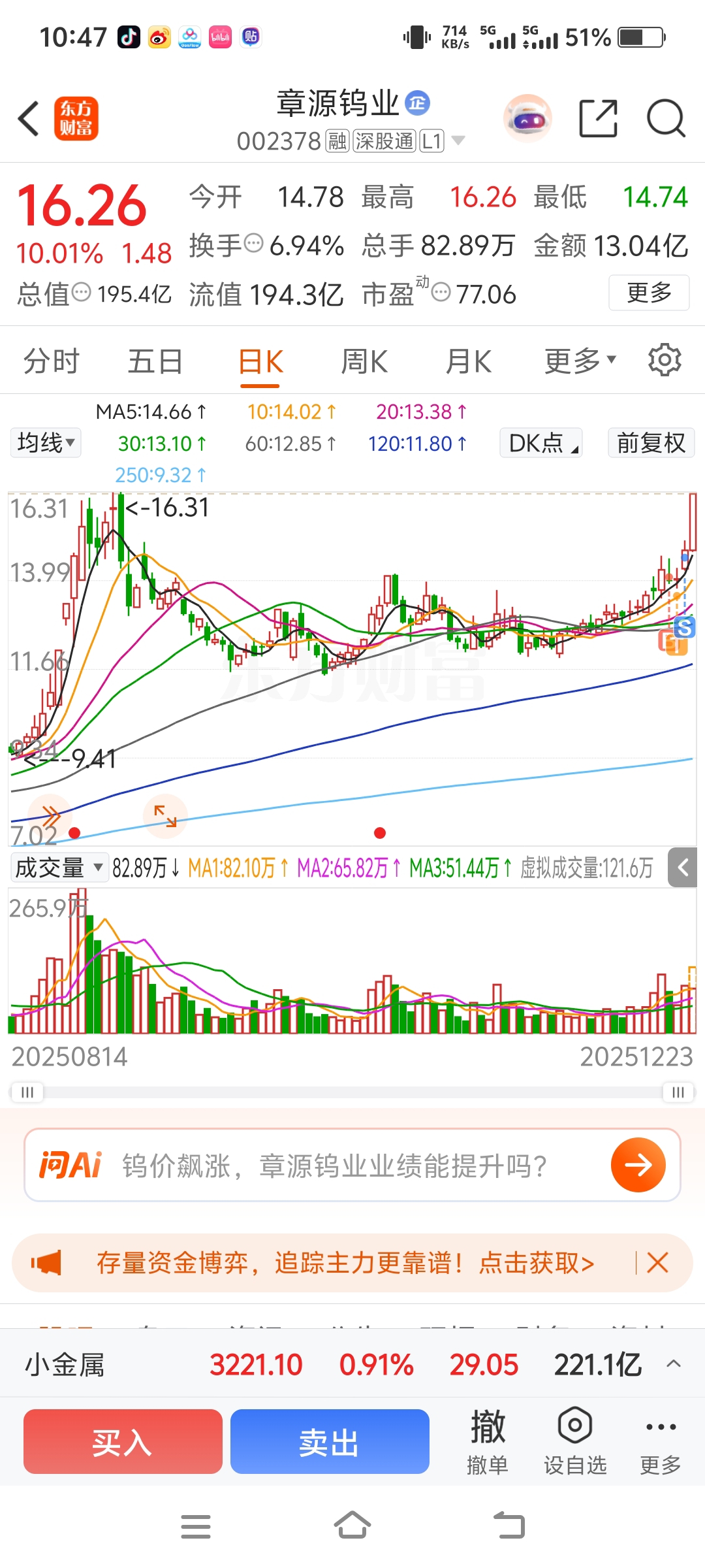 $章源钨业(SZ002378)$ 回调都不给就这样卖飞了