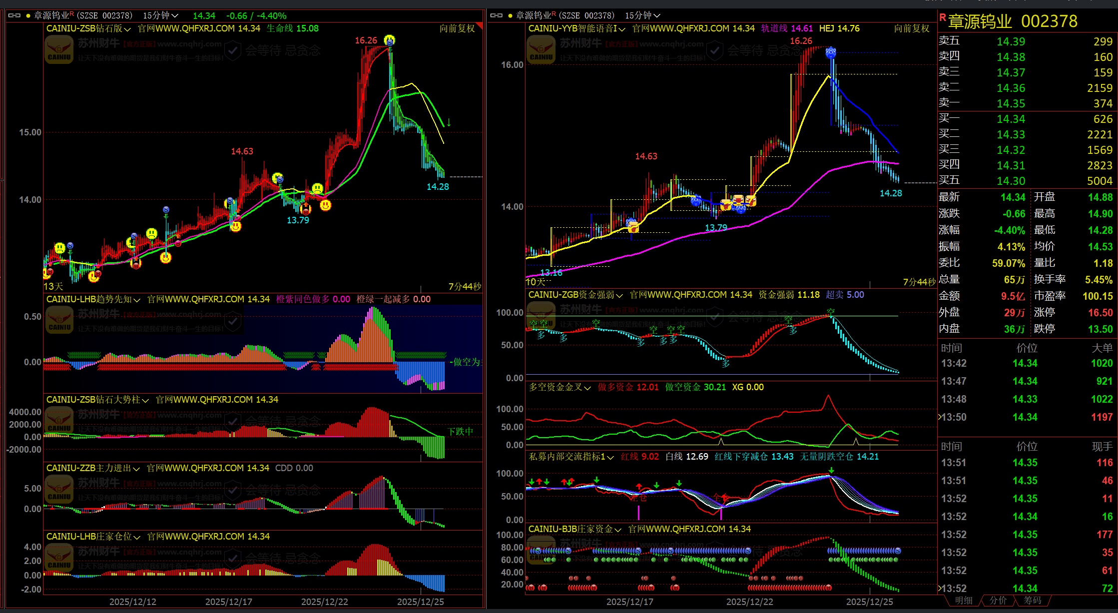 $章源钨业(SZ002378)$ 15分钟K线基本砸到位了,前天没跑的这价格没必要再卖了,