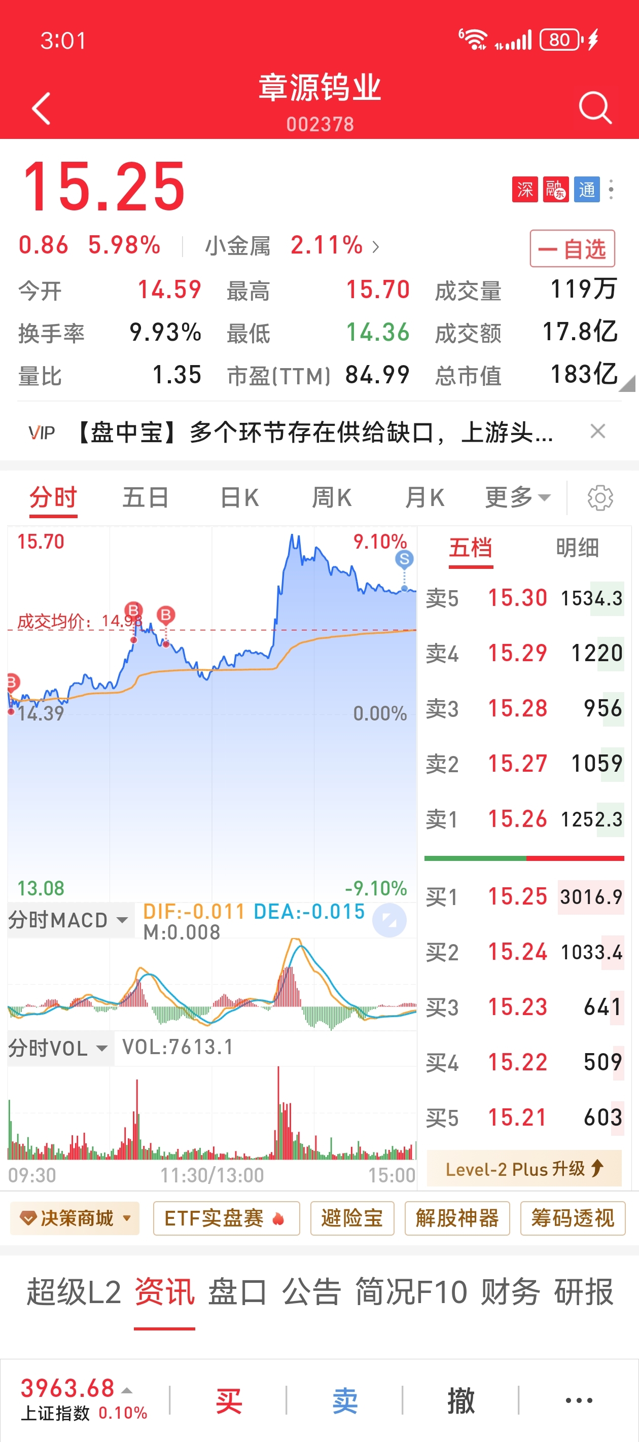 $章源钨业(SZ002378)$ 本以为会涨停,染个头就没了几个点,吸取上次的教训,尾盘减点仓吧,谁知道下周它又走出什么魔鬼步伐