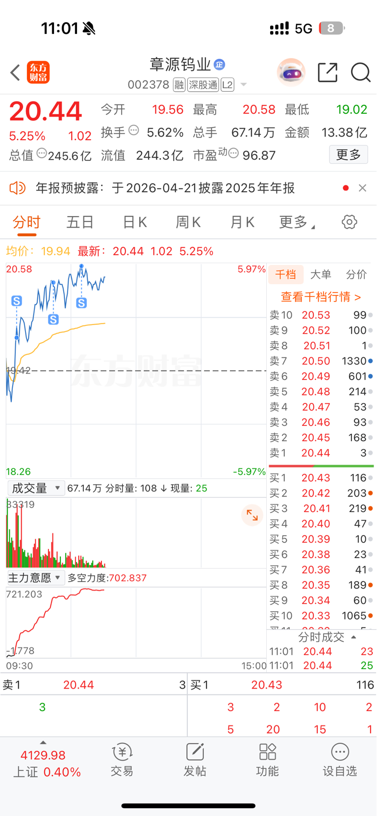 $章源钨业(SZ002378)$ 后面应该还能涨,昨天买的今天卖,明天有机会再上车