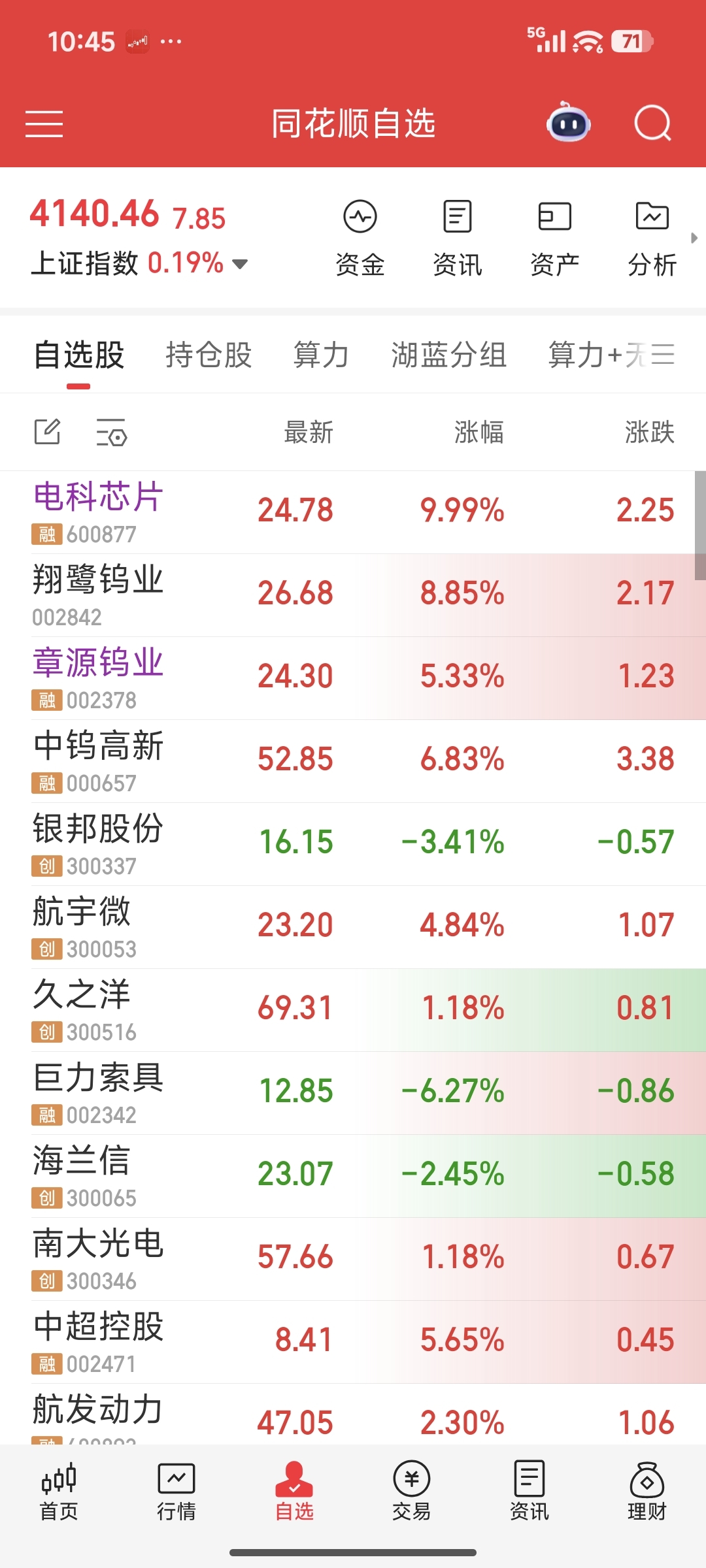 满仓两个都涨停。一个钨,一个卫星芯片
