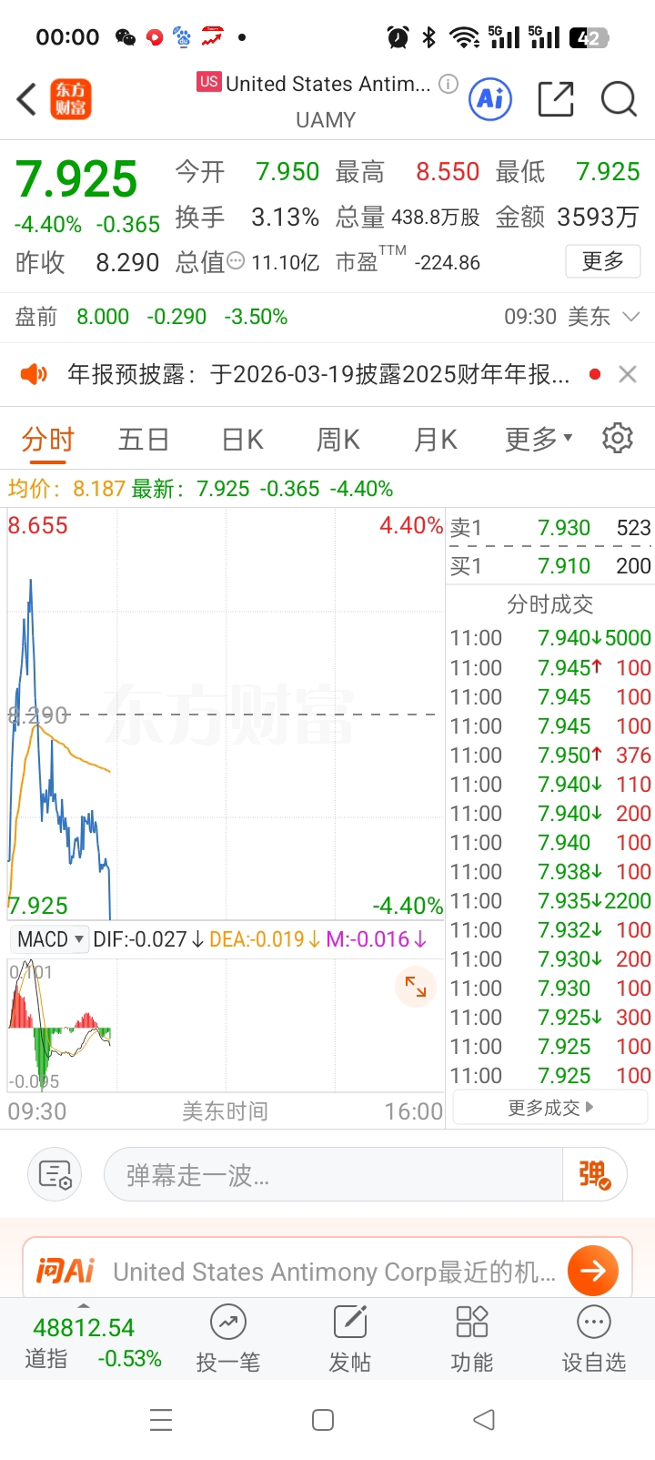 $章源钨业(SZ002378)$ 美股稀有金属美国锑业大跌,我们买的是钨矿