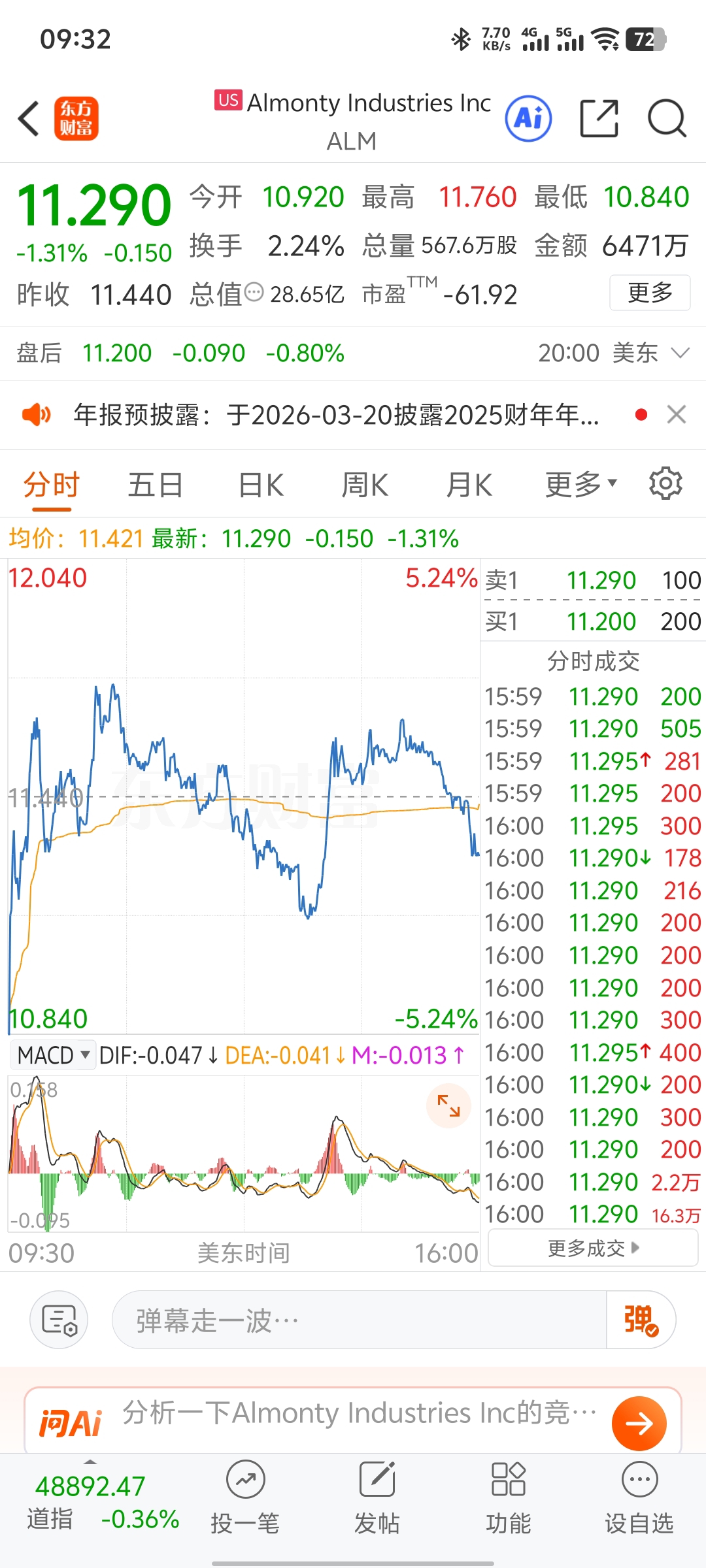 $章源钨业(SZ002378)$ 美股钨ALM周五晚上走势还好,周一稳了