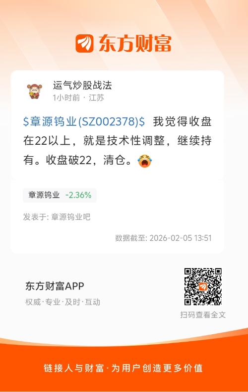 $章源钨业(SZ002378)$  我觉得收盘在22以上,就是技术性调整,继续持有。收盘破22,清仓。