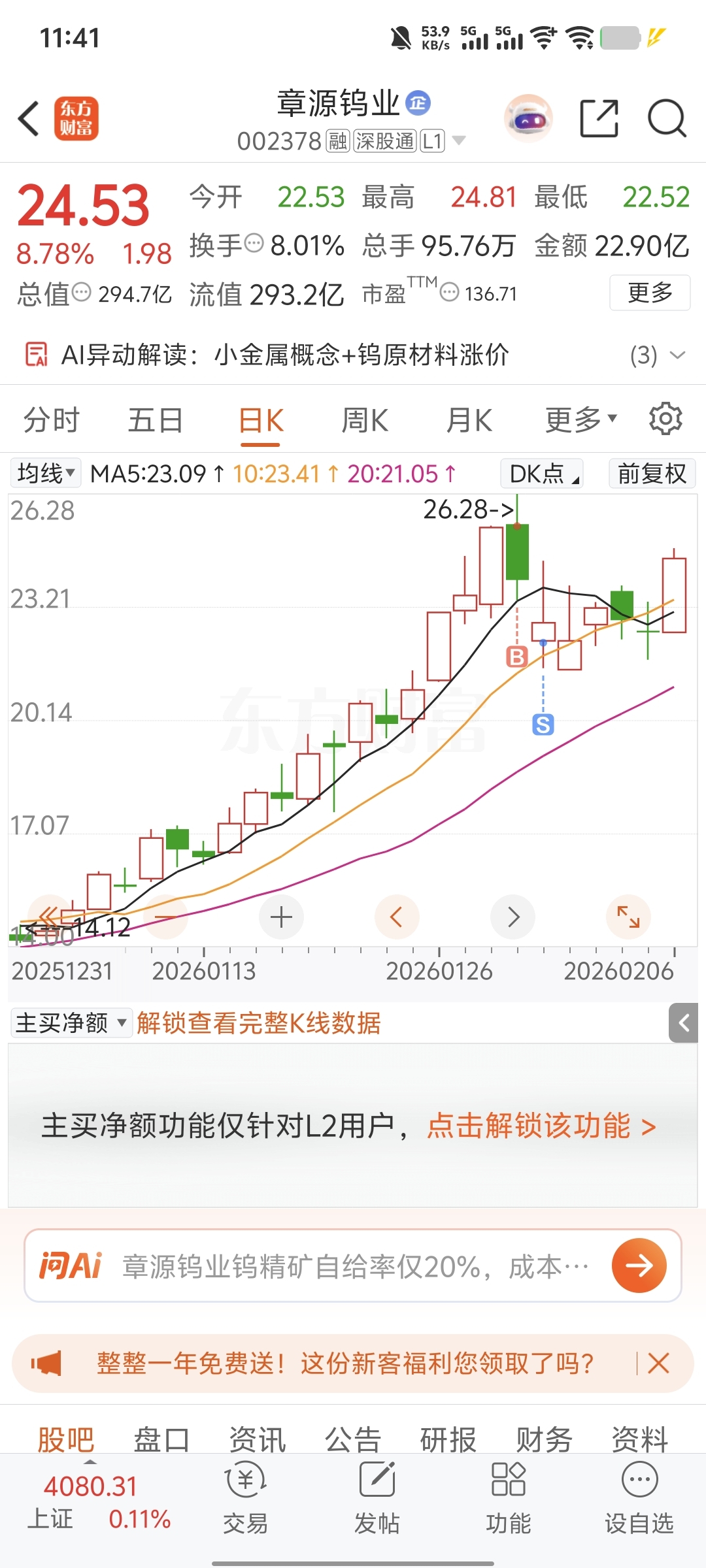 $章源钨业(SZ002378)$ 麻了 应该找机会低位回来的
