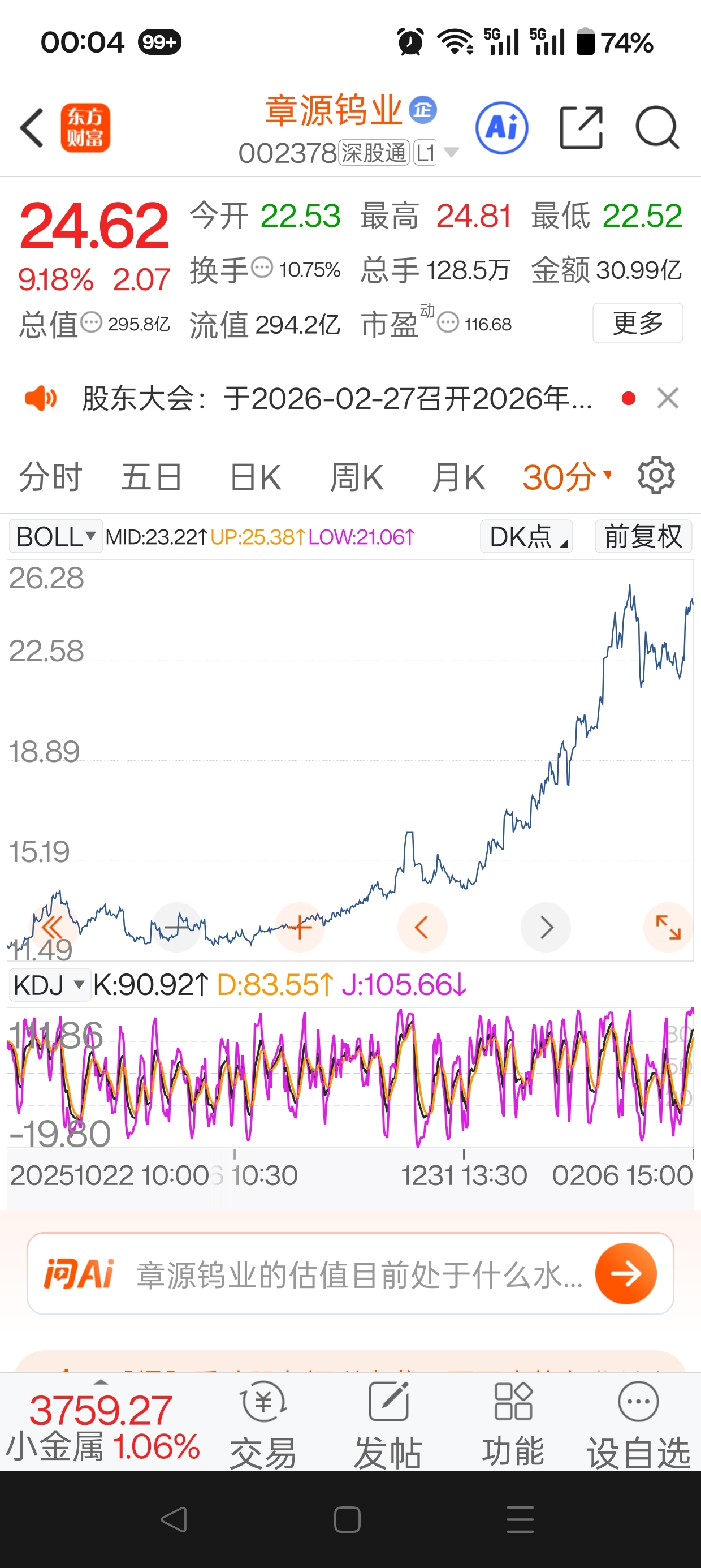 $章源钨业(SZ002378)$ 看细节,M头已经形成。
