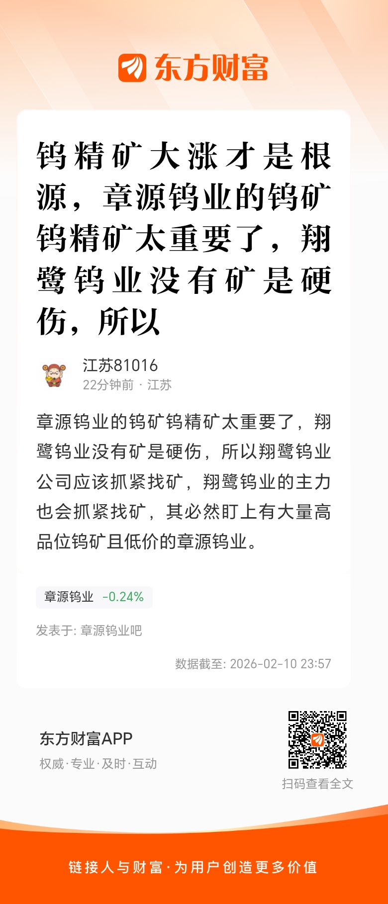 章源钨业的钨矿钨精矿太重要了,翔鹭钨业没有矿是硬伤,所以翔鹭钨业公司应该抓紧找矿,翔鹭钨业的主力也会抓紧找矿,其必然盯上有大量高品位钨矿且低价的章源钨业。