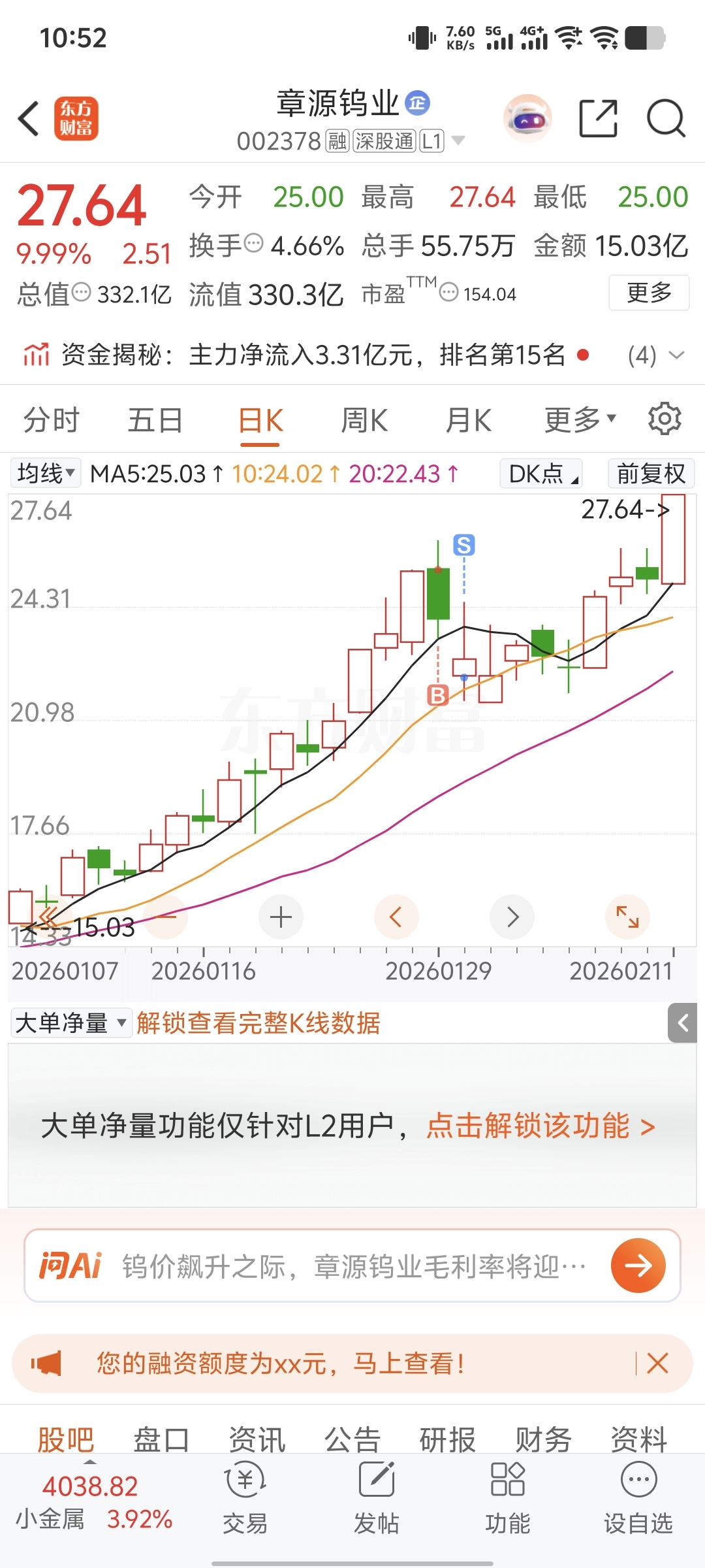 $章源钨业(SZ002378)$ 唉,当时金属大跌不该割,错杀