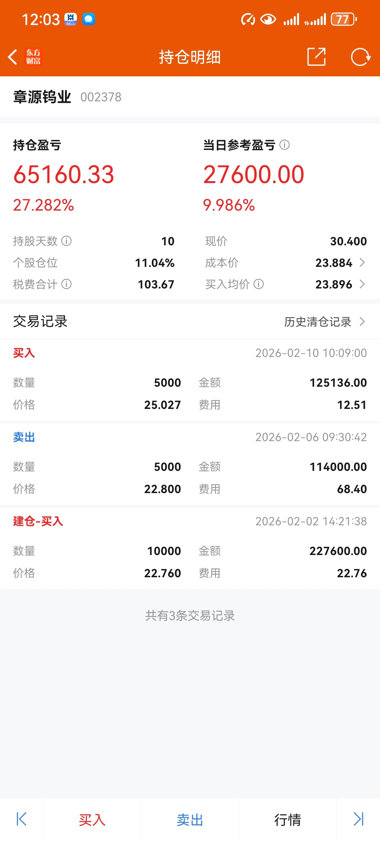 $章源钨业(SZ002378)$ 22.8卖的5000股亏死了