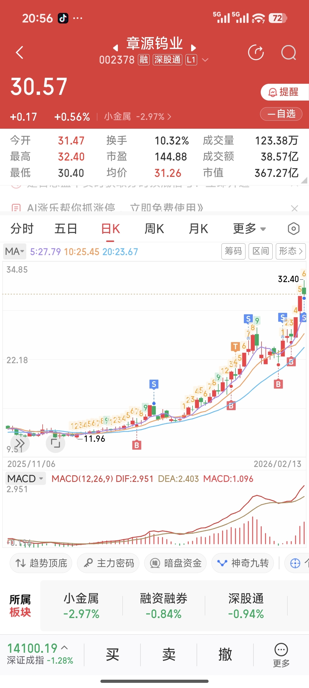 $章源钨业(SZ002378)$ 真是个好股票,几次都赚钱