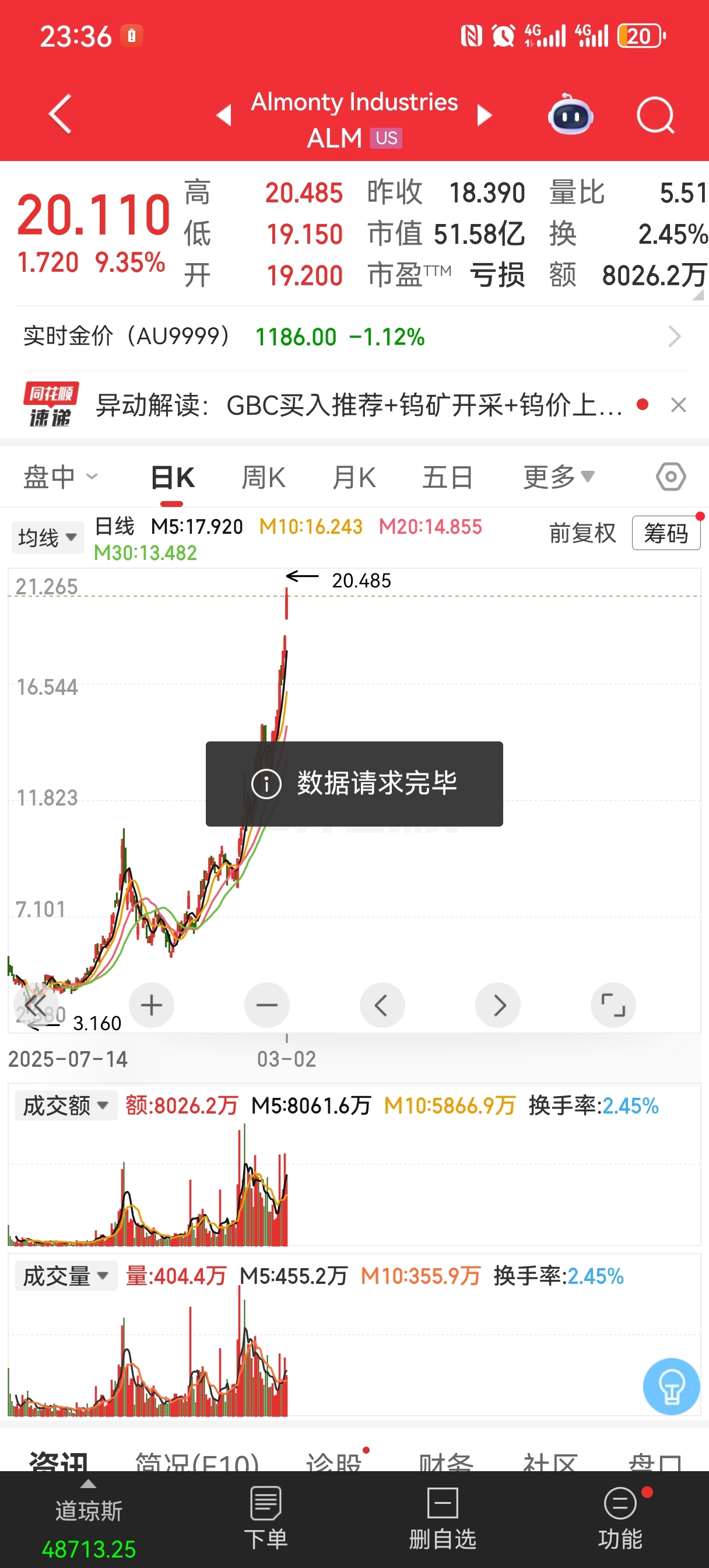 霍尔木兹海峡关闭,美股钨股aln继续狂飙,接近7倍了,我们钨最多只有5倍,不要怕