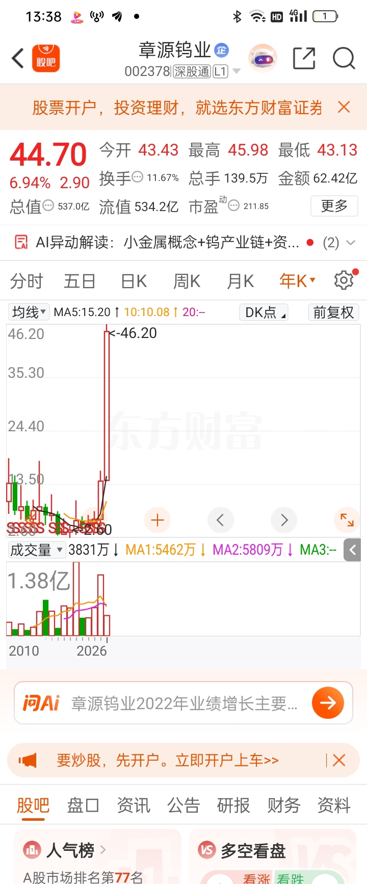 $章源钨业(SZ002378)$ 高处不胜寒。