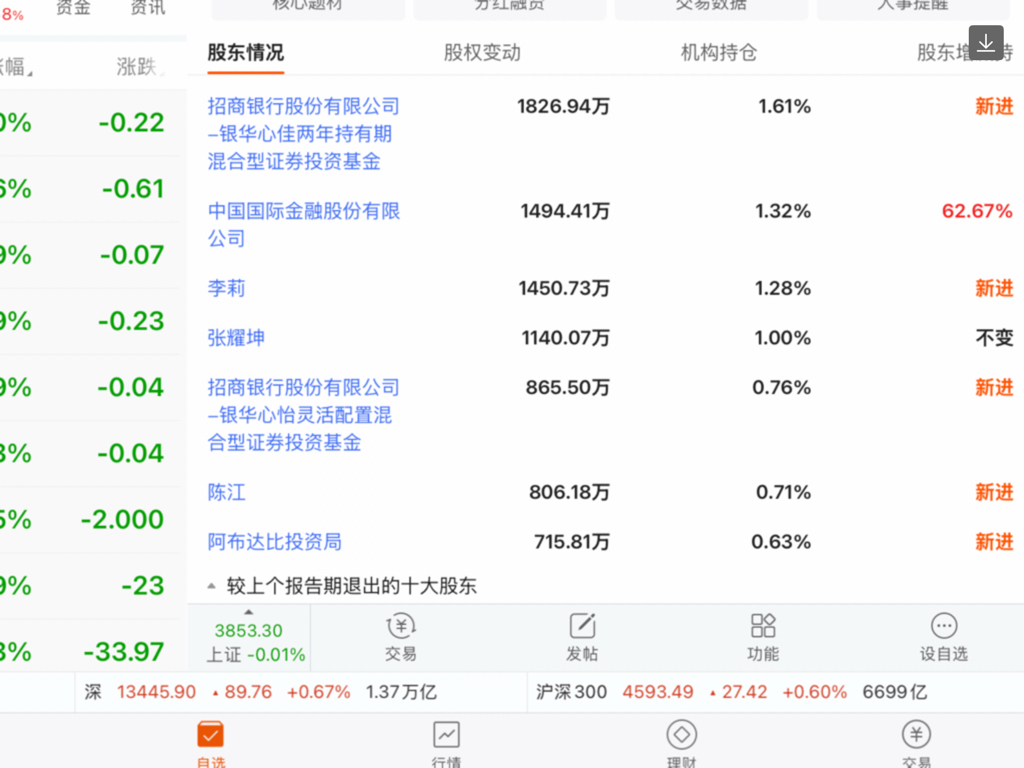 9月25日公告最近期前十大股东:全面大增仓。增加抢筹的中金公司+阿布达比主权+银华心佳基金+心怡基金+李莉+陈江的大股东