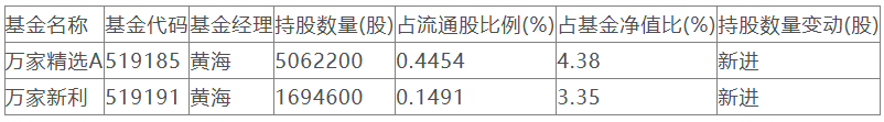 数据显示,万家基金旗下2只基金重仓宏创控股股票,合计持有宏创控股675.68万股