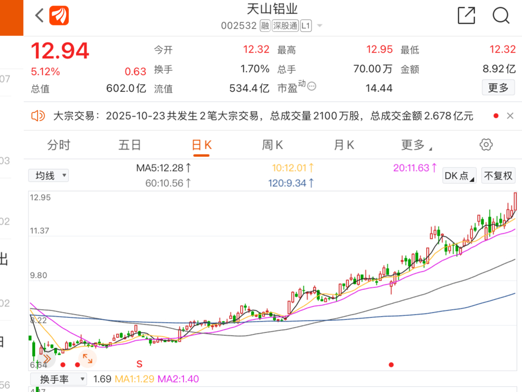 天山铝业PE14.5倍,连续大涨,宏创置入部分2024赚1.4元,今年增加30%