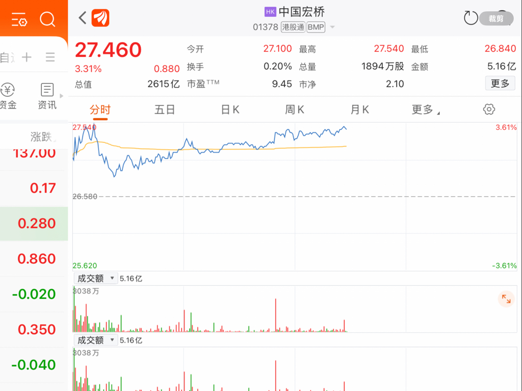 宏桥大涨3.5%创新高。母公司宏桥利润爆增=宏创控股利润爆增
