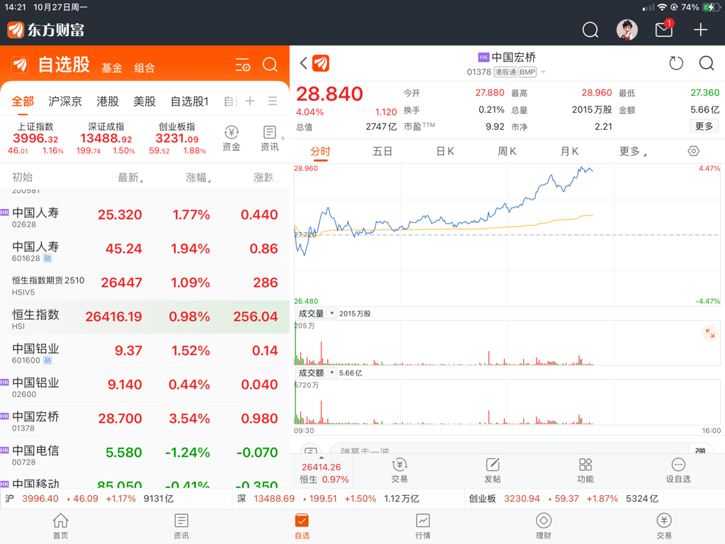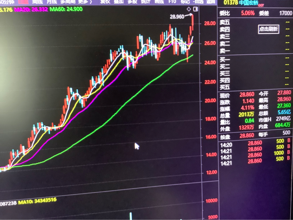 宏创同一主体中国宏桥都28.96元了,今天又大涨4.47%了,