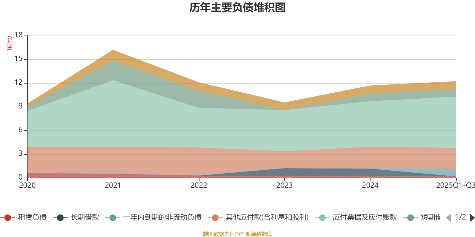 负债重大变化方面,截至2025年三季度末,公司长期借款较上年末减少100%,占公司总资产比重下降3.07个百分点;一年内到期的非流动负债较上年末增加1459.79%,占公司总资产比重上升3.05个百分点;应付票据及应付账款较上年末增加12.13%,占公司总资产比重上升3.03个百分点;合同负债较上年末增加43.26%,占公司总资产比重上升0.42个百分点。