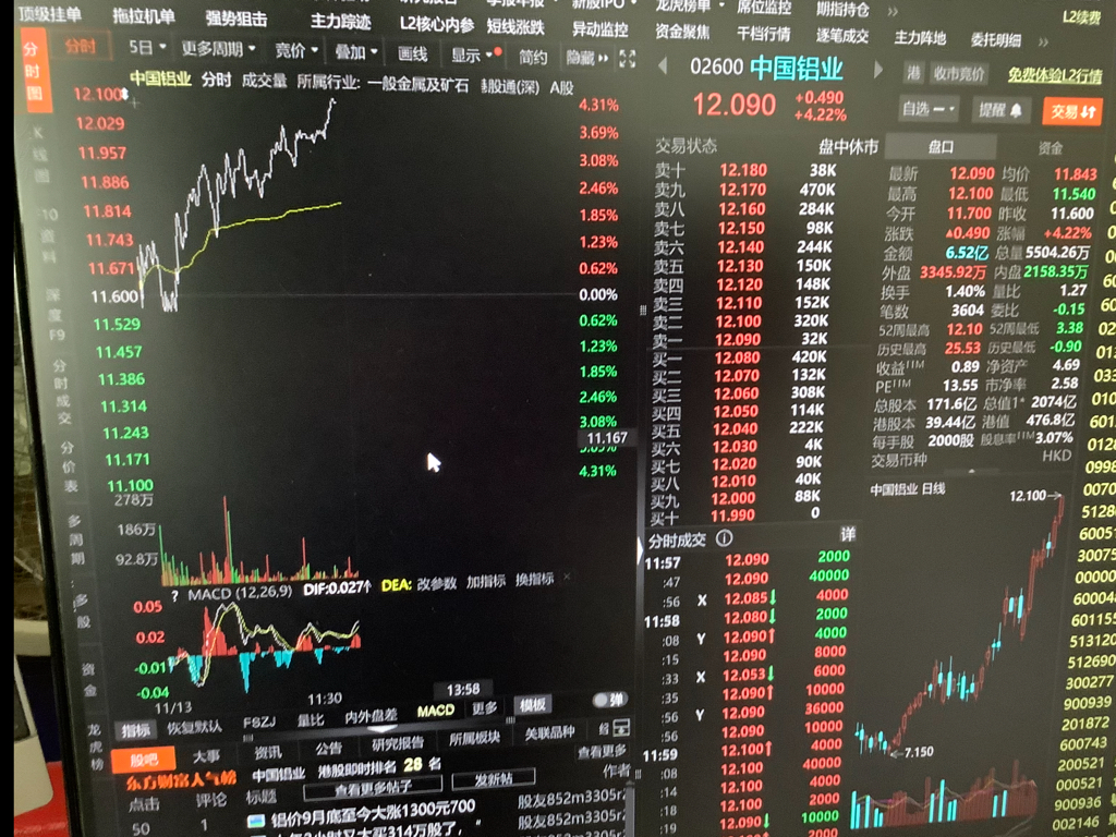 一上午巳大买3345万股:稳稳站上12元。铝价9月底至今大涨1300元700万吨