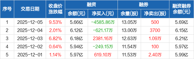 宏创控股:融资净偿还4585.86万元,融资余额5.66亿元(12-05)
