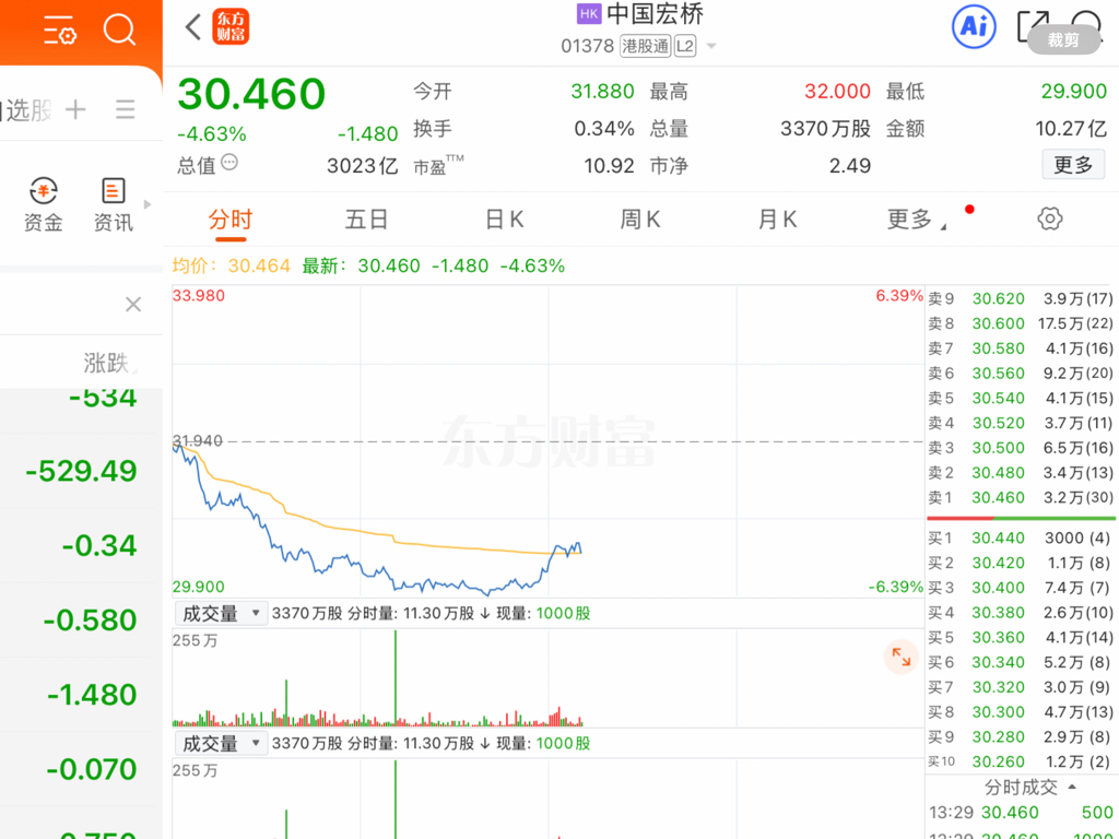 宏桥逐步上来3%了