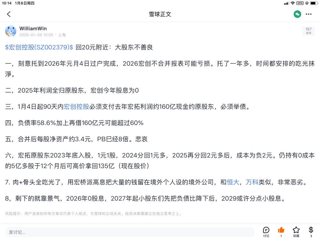 -.宏创控股必须90天内支付2025年利润,现金约160亿一190亿给控股股东二