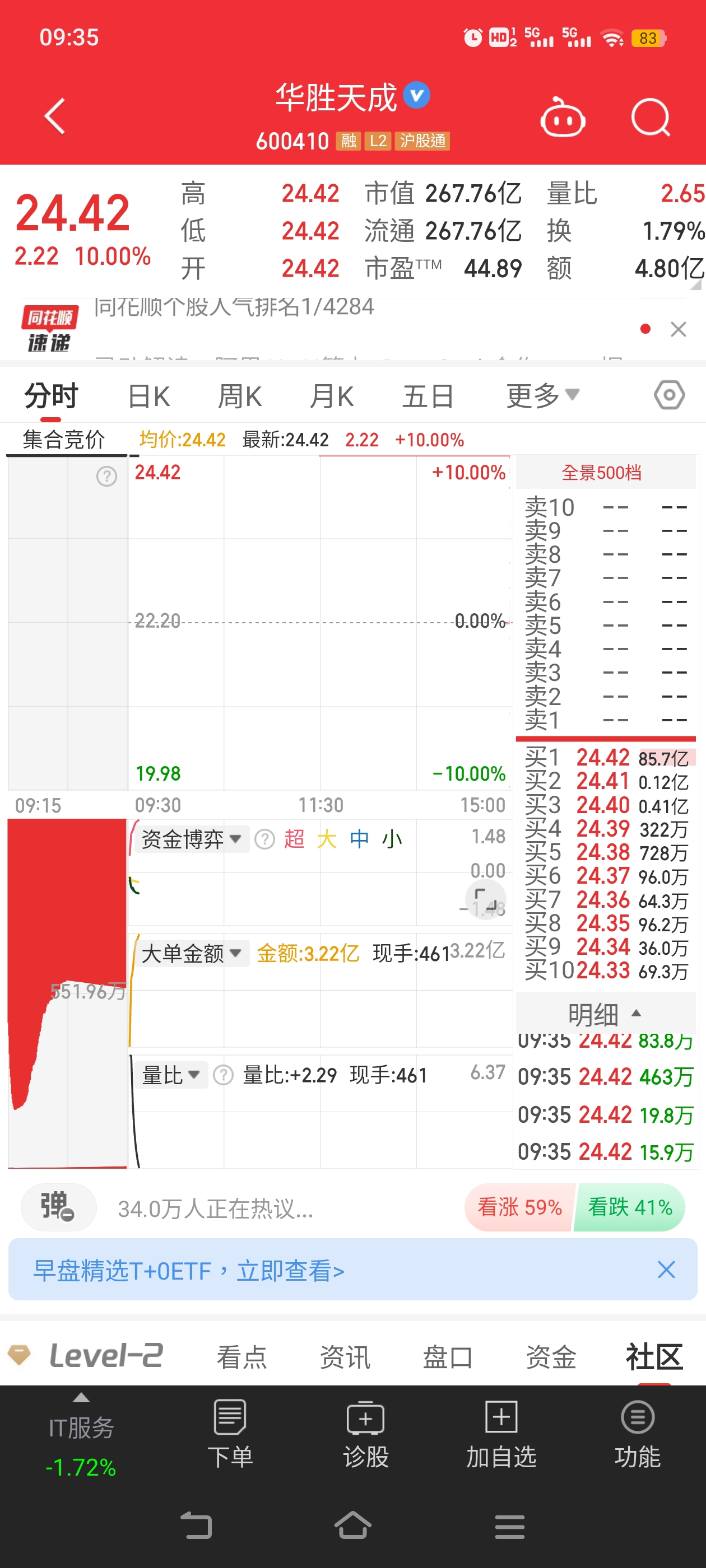 $科远智慧(SZ002380)$ 看看华胜八十亿封单