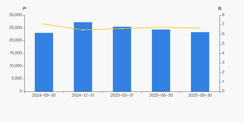 自2024年12月31日以来,公司股东户数连续3期下降,截至目前减幅为14.33%。2024年12月31日至2025年9月30日区间股价上涨2.80%。